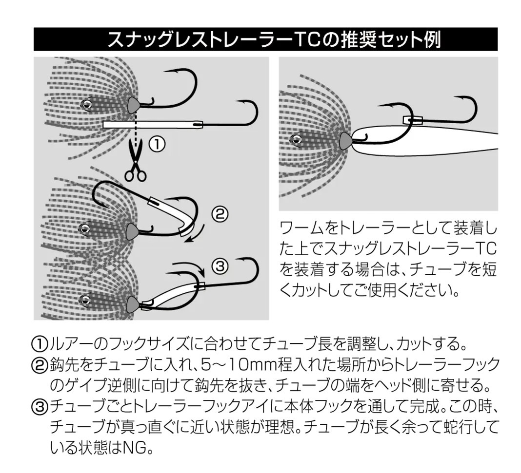 Lo Snagless Trailer adotta uno speciale sistema di montaggio del gancio, una finitura TC Coat per prestazioni di penetrazione ancora superiori e componenti rinforzati, incluso il tubicino in silicone in dotazione, per un utilizzo più pratico, affidabile e confortevole.