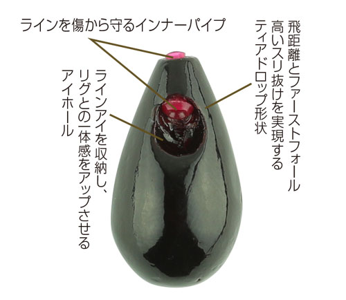 Ideale per la montatura “Bifutechi”, una combinazione tra il Texas rig e il piombo fissato direttamente sull’esca, questo sinker unisce i vantaggi di entrambe le soluzioni.